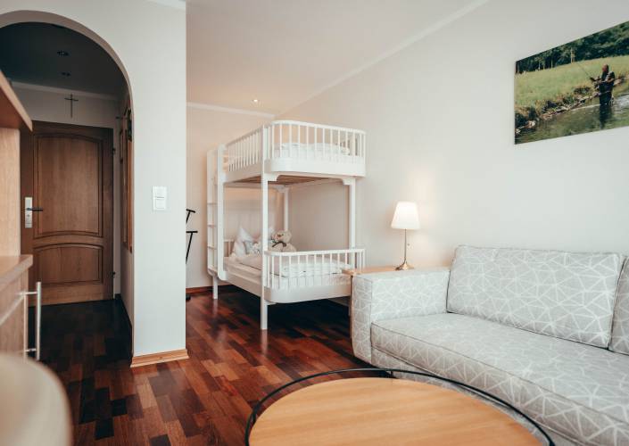 Moderne Wohnung (112 m²) mit Wohn- / Essbereich, voll ausgestatteter Küche und sonniger Dachloggia mit einem weiteren Essbereich. Drei Schlafzimmer, zwei Badezimmer, davon eines mit freistehender Badewanne und Dusche sowie ein zweites Bad mit Regendusche. Schlafen Sie in komfortablen Boxspringbetten, ein Kingsizebett in Größe 180 cm, zwei Queensize Betten in Größe 160 cm. Flat TV im Wohnraum, kostenfreies WLAN. Wie in unseren Hotel-Zimmern bieten wir Ihnen neben Bio Frottier- und Bettwäsche nachhaltige Produkte von „Rituals“ an. Reinigung täglich. Zudem steht ein Waschtrockner von Miele in der Wohnung zur kostenfreien Verfügung. Die Wohnung befindet sich im Nebengebäude. Selbstverständlich dürfen alle Hotelannehmlichkeiten genutzt werden, bspw. Bibliothek, SPA & GYM. Angebote mit Frühstück und Verwöhnmenü verfügbar.